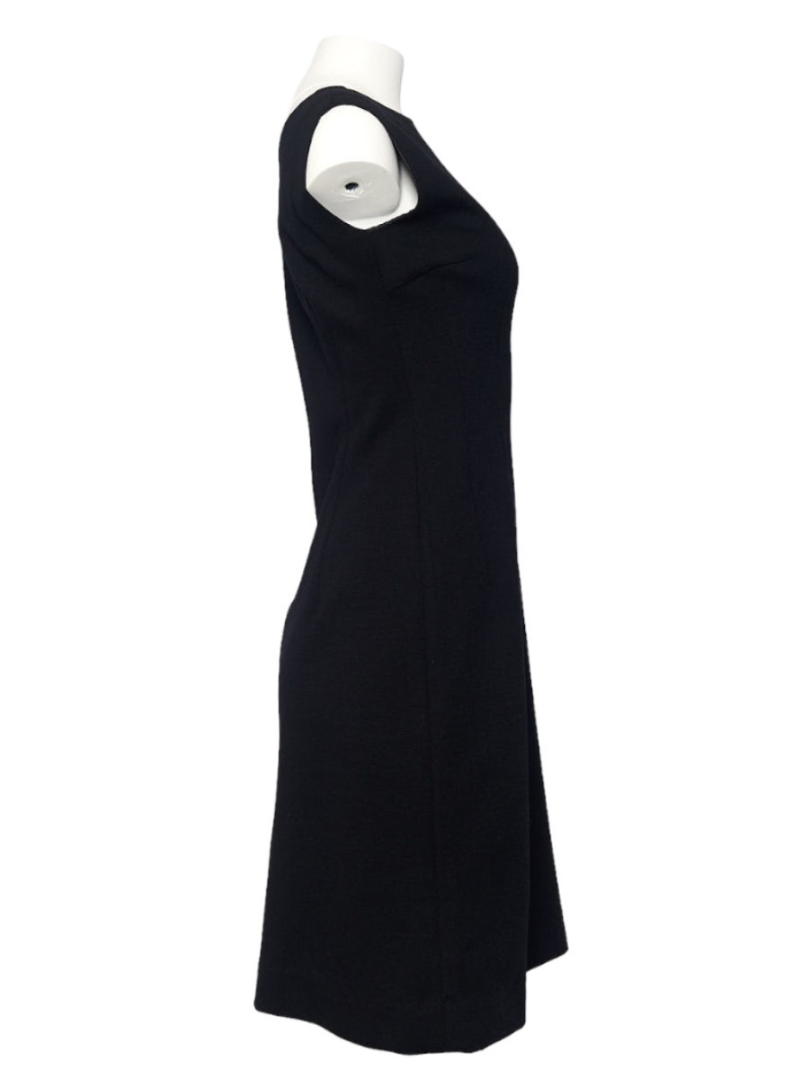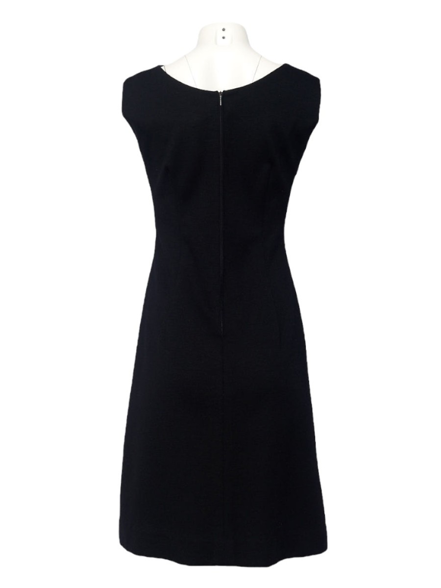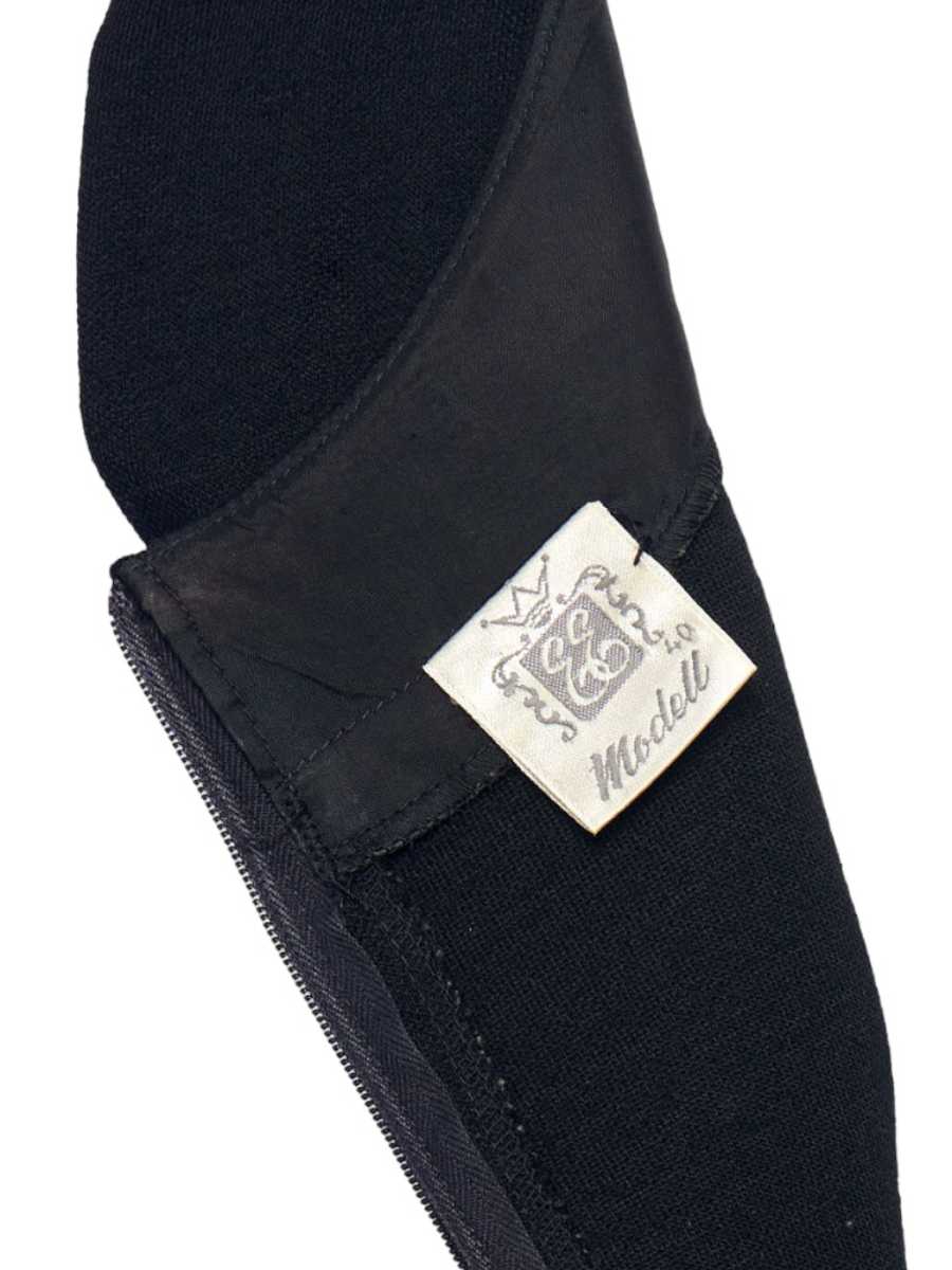 Ensamble kleines Schwarzes Kleid mit kurz Arm Bolero aus feinem Wollstrick. Hochgeschlossener Halsausschnitt und Figur nahes Kleid. Dazu passendes kurzes Bolero mit kurzem Ärmel und Fransen mit schwarzen Glasperlen am Saum. Das Kleid wird hinten mit einem Reissverschluss geschlossen. Dieser Artikel ist nur Online erhältlich.