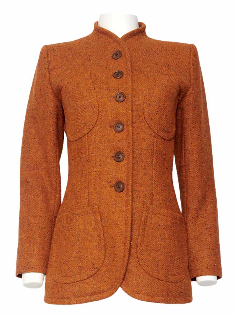 Yves Saint Laurent rive gauche Woll Tweed Jacke von 1987. Die Jacke ist aus einem Dormeuil Stoff aus 100% Wolle, hat aufgesetzte Taschen, sechs Holzknöpfe und ist mit einem Bemberg Satain gefüttert. Dieser Artikel ist nur Online erhältlich.