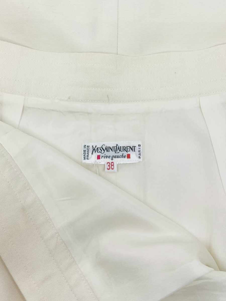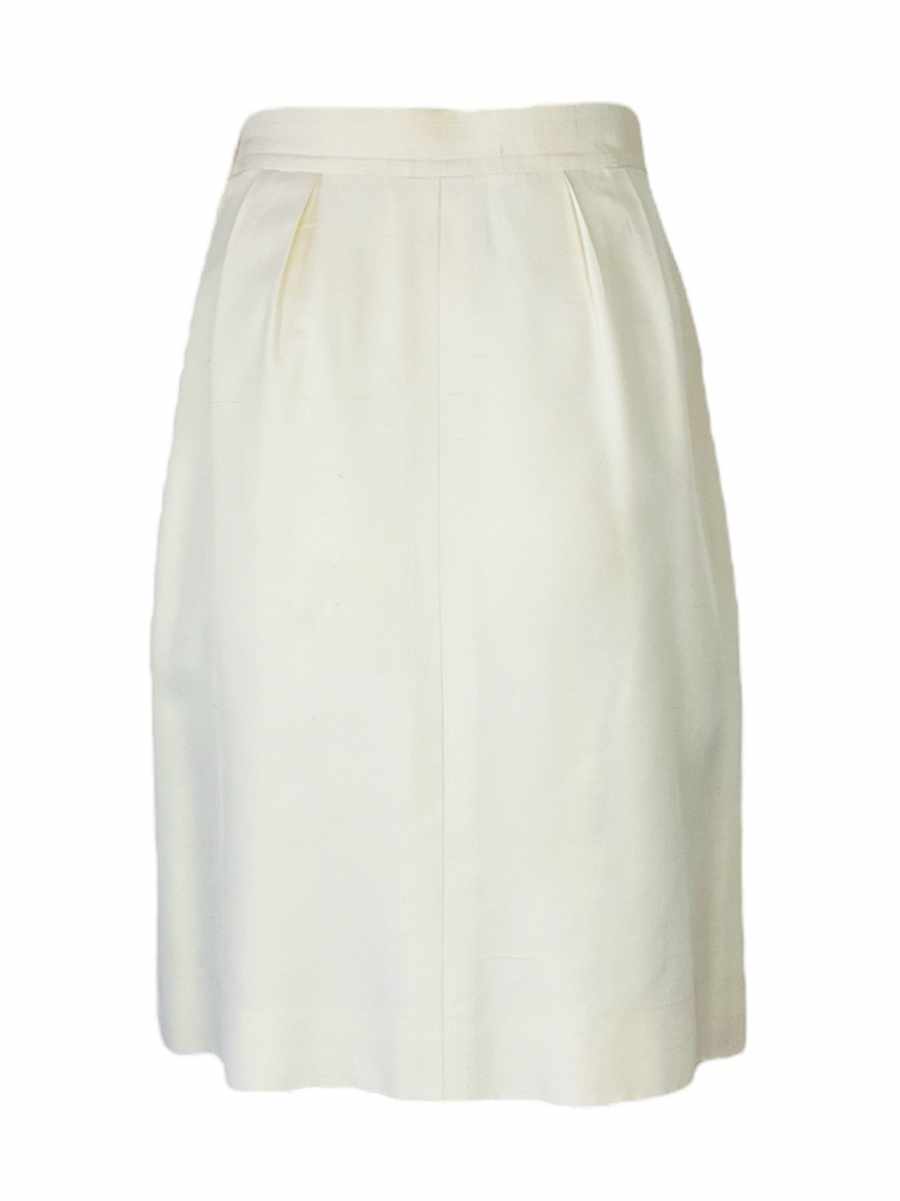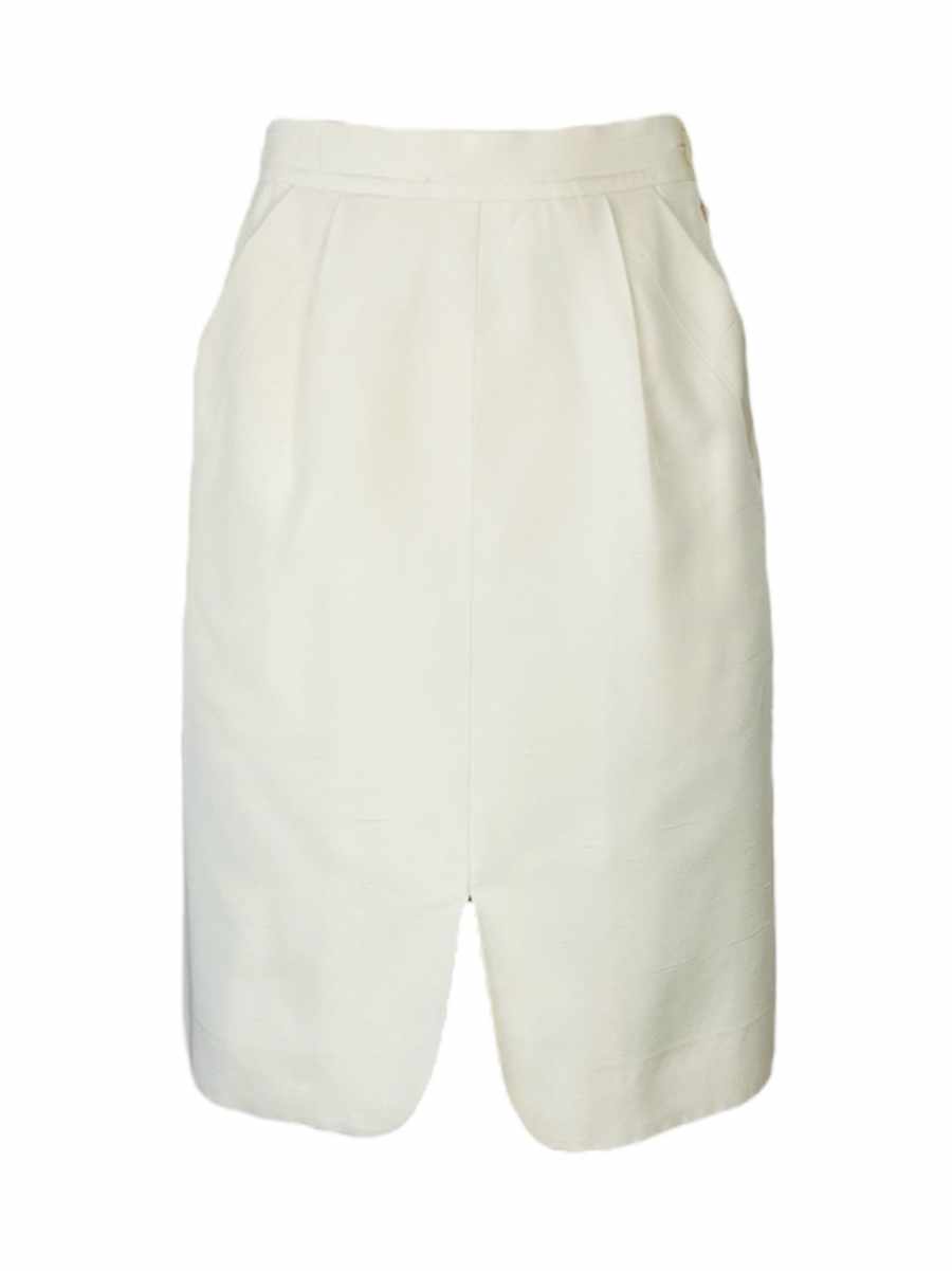 Yves Saint Laurent Seidenjupe aus den 1980er Jahren. Dieser Jupe ist mit seiner Schlichtheit und seinen klaren Linien ein Typisches Yves Saint Laurent Stück. Auch nach seinem Tod gilt Yves Saint Laurent als Koryphäe der eleganten Damenmode und ist bis heute einer der bekanntesten französischen Modeschöpfer in der Geschichte.